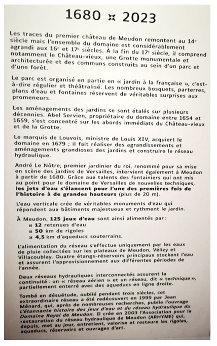 * Association pour la Restauration du Réseau hydraulique de Meudon (ARHYME) qui œuvre depuis des années pour sortir de l’oubli tout ce patrimoine et le mettre à l’honneur